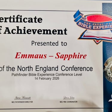 Bradford, United Kingdom / Kampala, Uganda — The Emmaus Sapphire Pathfinder Club, driven by the Holy Spirit, made a strong showing at the United Kingdom’s North England Conference (NEC) Pathfinder Bible Experience (PBE) Finals, joining 48 other NEC clubs for a day of intense Scripture-based testing and spiritual growth on Sabbath, 14th February 2026.
