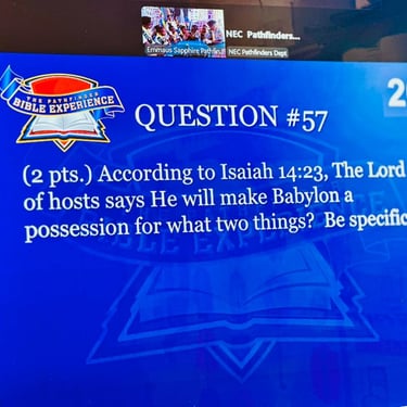 A combined team of seven Pathfinders, six from Emmaus Sapphire Pathfinder Club and one from the Silver Springs Aquamarine Pathfinder Club, gathered in a room at Emmaus Church ahead of the finals. Proceedings officially began at 9:00 am UK time, as the Sapphire Pathfinders logged in and joined the clubs that were physically presentat Hanson Academy, Bradford, UK, for the highly anticipated competition.