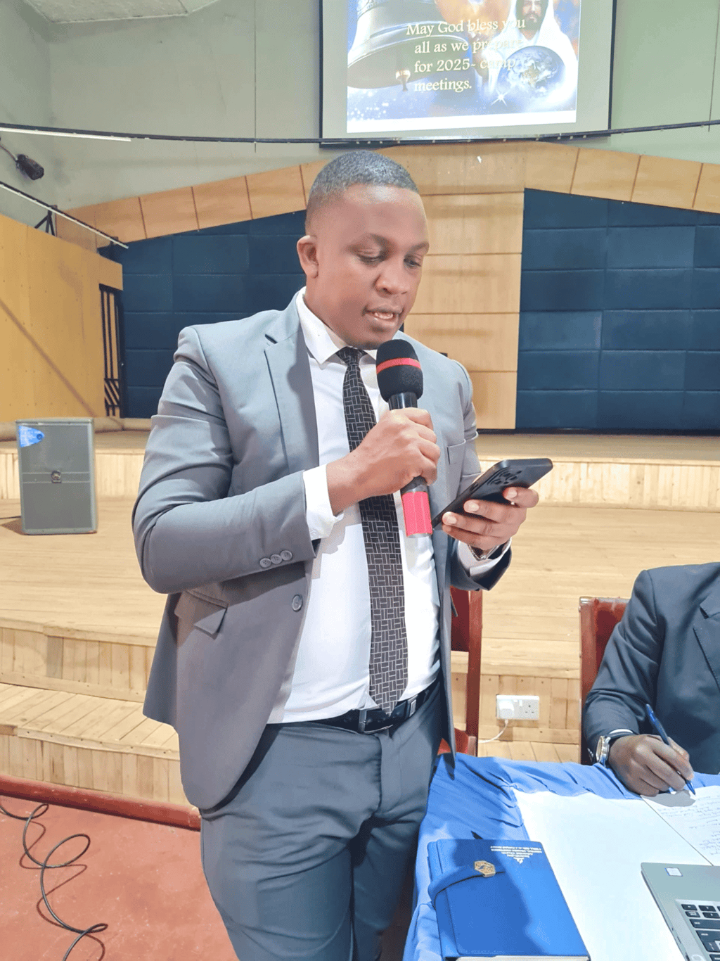 The central theme of the upcoming camp meetings—“Our Goal: Making Disciples for Jesus Christ”—was introduced by Pastor Robert Kyeyune. He stressed alignment with the global mission of the Adventist Church and urged all presentations to reflect this focus. He also highlighted challenges of maintaining district identity when districts collaborate on large gatherings, and urged all leaders to reinforce the theme through music, scripture (Matthew 28:18–20), and consistent messaging.